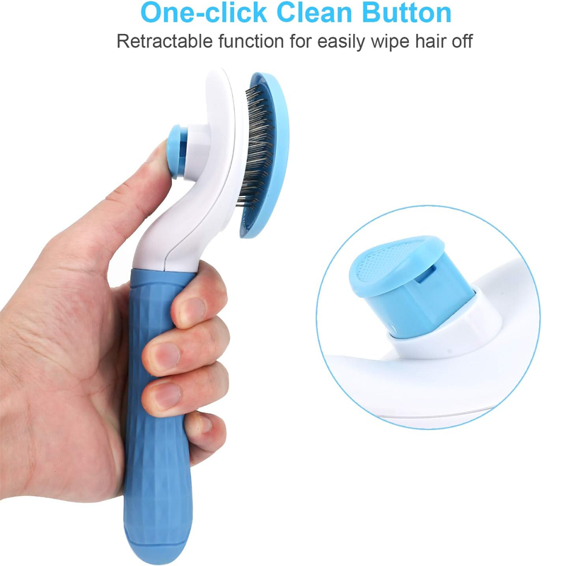 This self-cleaning pin brush is designed for dogs, cats, and rabbits, easily removing loose undercoat. Its unique massage design provides a comfortable brushing experience for your pet while maintaining healthy fur and reducing shedding.
